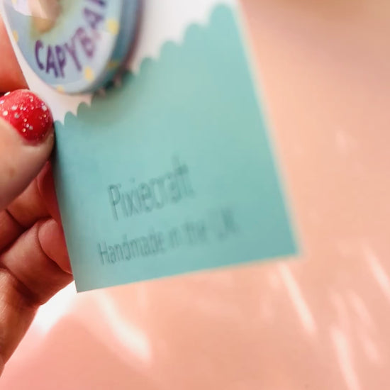 Whether you wear it on your jacket, pin it to a tote bag, or stick it on your fridge, this little capybara will bring a smile to your day.