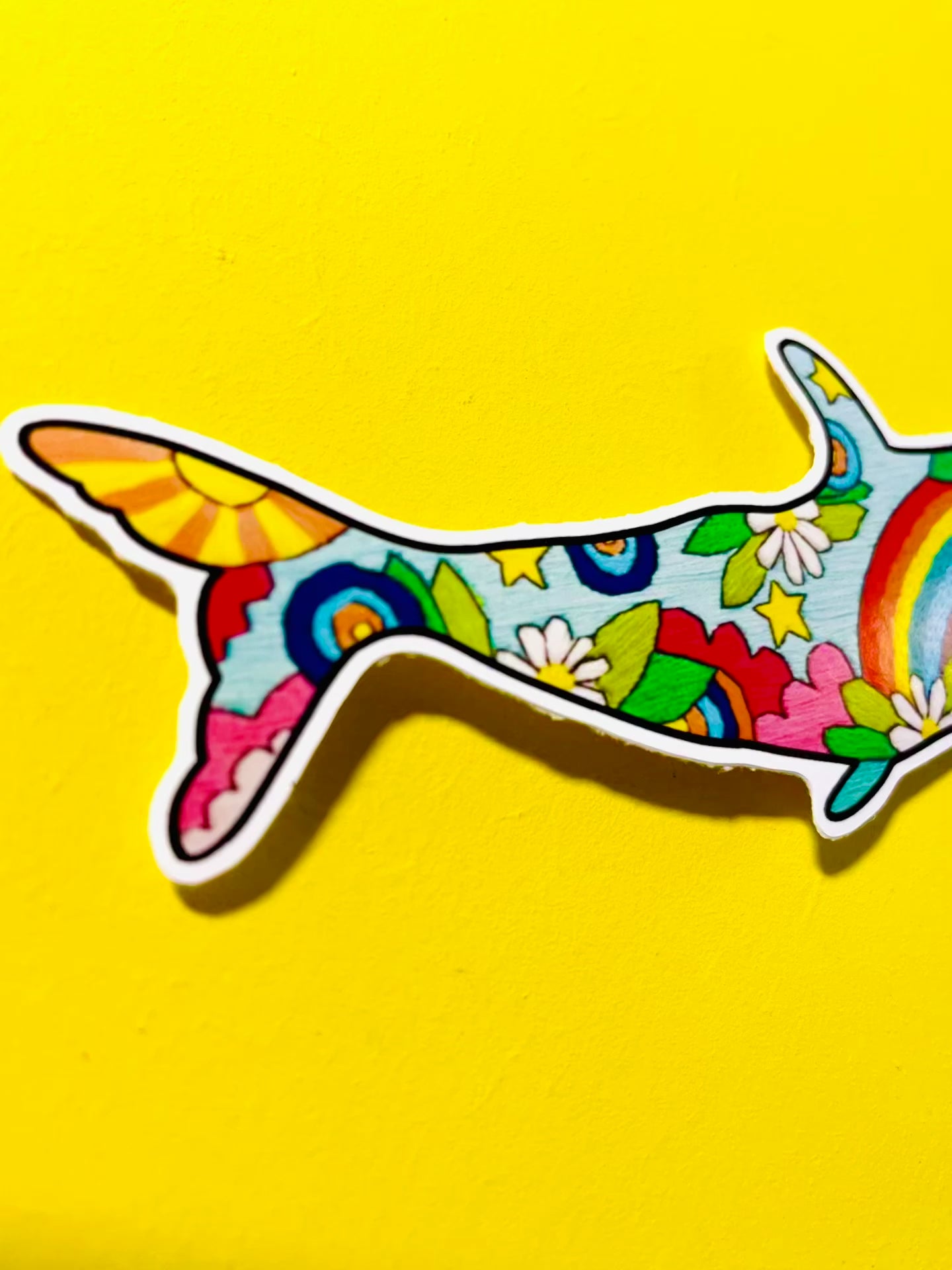 Stitchy Rainbow Whale Hand Embroidery Vinyl Sticker